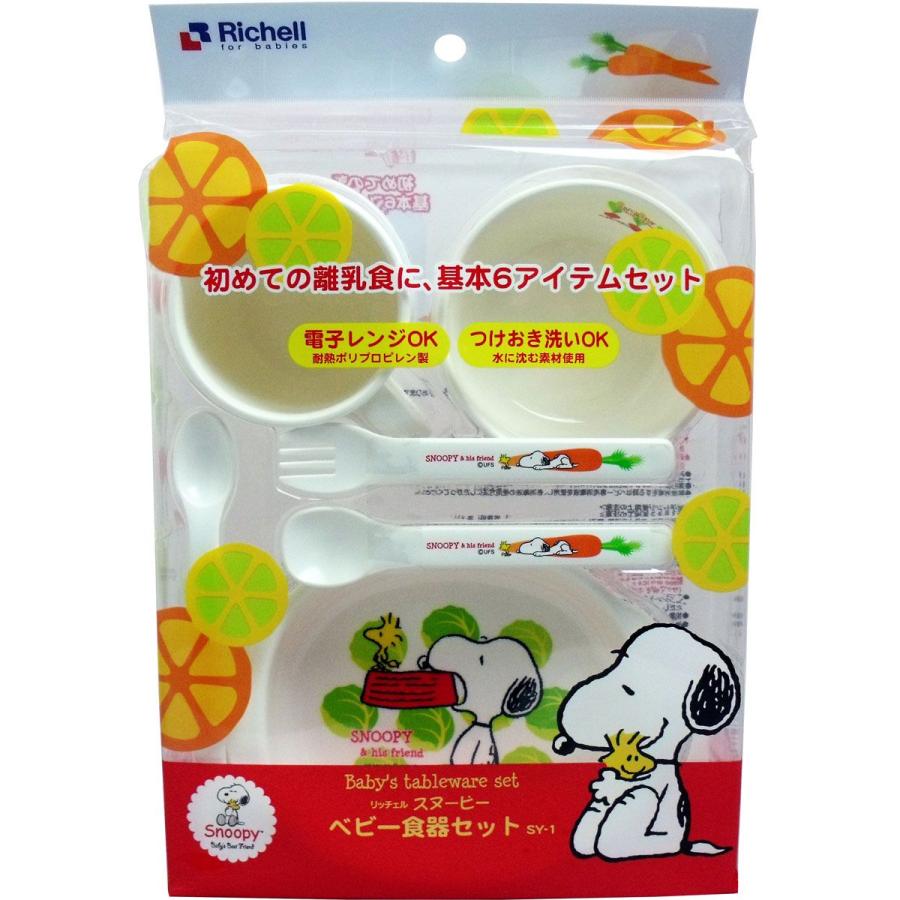 キュートな柄でウキウキ 毎日の食事は これでキマリ メーカー直送 リッチェル スヌーピー ベビー食器セット sy 2出産祝い お食い初め